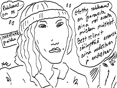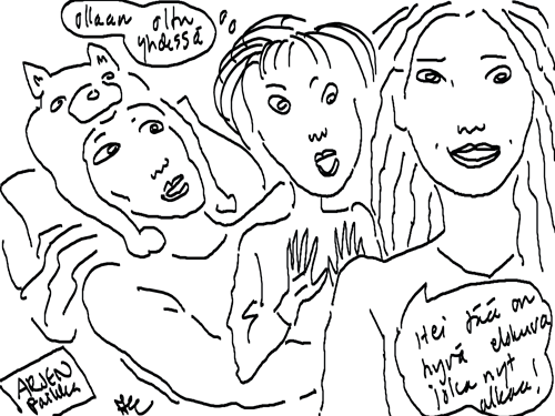 Uusi sarjakuva darlingin värikkäästä elämästä on yön tunteina valmis. Siihen menee vielä hetki ja tovi ja monta kuumaa glögimukia. Mustavalkoisen sarkasmin värittäminen vie paljon aikaa ja uutta tarinaa pulppuaa koko ajan, joka hetki. Iso halaus jokaiselle rakkaat siskot ja veljet!