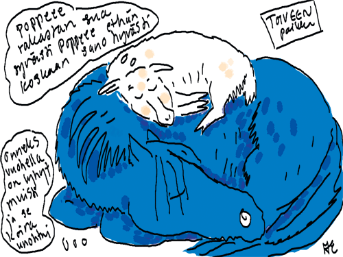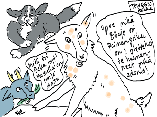 Kiitos opettaja! Kylläpäs mieltä lämmittää kehut! Sarjakuvakirjasta haaveilen kun vaan löytyisi kustantaja. Muutama apulaistonttu tekis terää että kerkeäis värittää jokaisen kuvan kun mieli on niin altis uusille seikkailuille.